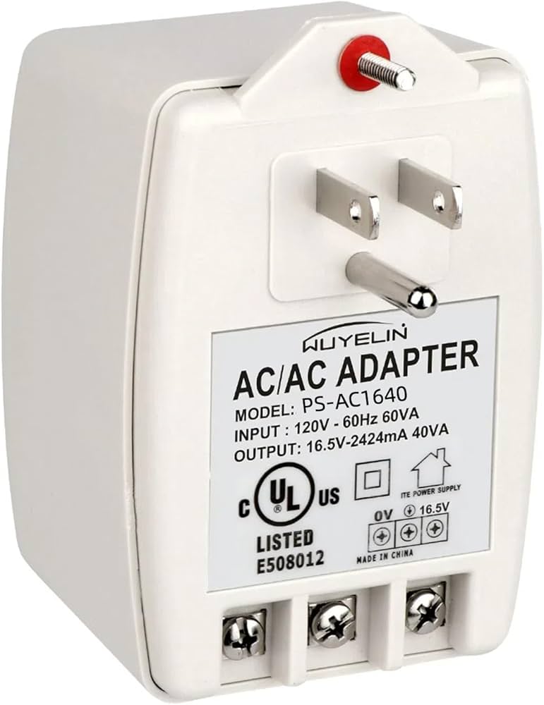 - SPECIFICATION: input voltage: 120 VAC, 60Hz; Output voltage: 16.5V, 40VA SAFE AND STABLE auto-resetting (PTC) fused secondary, LED green power indicator