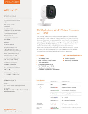 Alarm.com Indoor 1080P Wi-Fi Camera with Ethernet connectivity (ADC-V523X)